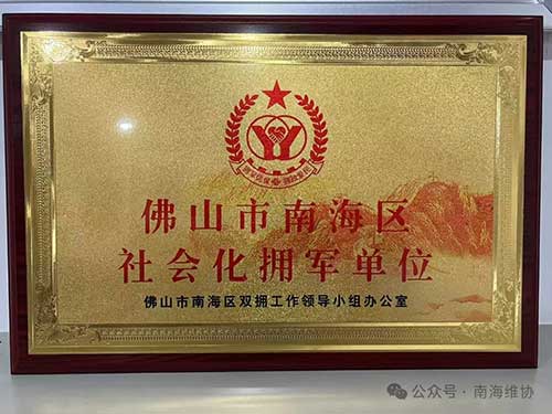 2025年7月24日,南海區退役軍人事務局和桂城街道退役軍人服務站聯合,為我區協會及會長單位(南海區會眾汽車維修廠)頒發“佛山市南海區社會化擁軍單位”牌匾,而這意味著將為轄區內軍人軍屬、退役軍人和其他優撫對象提供專屬優惠服務,為新時代擁軍工作奉獻力量。