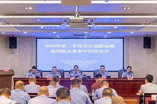 市交通運輸綜合行政執法支隊和市公安局交通管理支隊相關負責人分別通報二季度全市道路客貨運輸高風險企業及違法情況。34家高風險企業負責人表示,將深入剖析企業違法違規行為、安全事故及安全隱患的深層原因,確保整改及時到位,同時主動申請屬地交通執法部門開展“邀約式”執法檢查和“靶向式”安全指導,強化安全風險預判與前置防控。