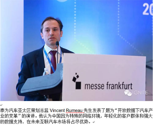 智能互聯汽車路演(Connected Mobility)是一場系列性國際峰會,首站于2016年9月在德國法蘭克福的Automechanika展會期間舉行;第3站將于2017年3月在美國奧斯汀登場。