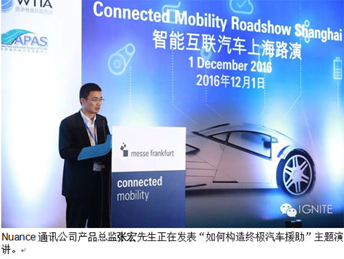 2016年12月1日,由法蘭克福展覽(上海)有限公司旗下會議部門——Ignite奕格主辦的智能互聯汽車上海路演(Connected Mobility Roadshow Shanghai)在國家會展中心洲際酒店成功舉辦并圓滿落下帷幕。
