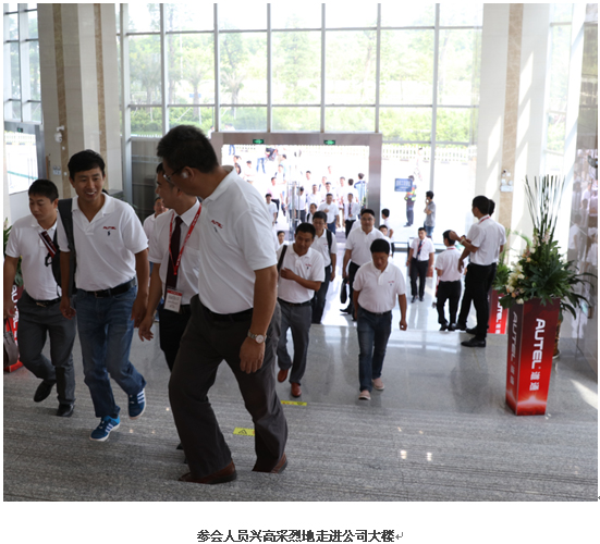 在上午的活動中,由道通科技國內銷售部總監蔡鵬帶頭,帶領遠道而來行業協會代表、經銷商代表和媒體朋友參觀了道通科技公司總部。