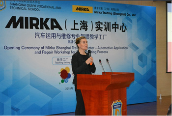 2015年12月2日,磨卡上海實(shí)訓(xùn)中心成立暨汽車運(yùn)用與維修專業(yè)鈑噴教學(xué)工廠揭牌儀式在上海群益職校隆重舉行。出席儀式的領(lǐng)導(dǎo)和嘉賓有來自磨卡全球市場(chǎng)總監(jiān)Nina Nyman女士、磨卡亞太區(qū)總經(jīng)理Vinay Mathur先生、磨卡中國(guó)區(qū)總經(jīng)理Ilpo Meskanen先生、芬蘭駐滬總領(lǐng)館代表馬丁先生、上海市教委職教處處長(zhǎng)勞曉蕓、上海閔行區(qū)教育局副局長(zhǎng)馬秀明、上海教委教育技術(shù)裝備中心副主任周齊佩、上海群益職校校長(zhǎng)陳金國(guó)等。還有上海大眾汽車公司、上汽通用汽車公司、PPG工業(yè)公司、巴斯夫涂料公司、阿克蘇涂料公司等磨卡合作伙伴,群益職校的師生及家長(zhǎng)代表、媒體代表共計(jì)80多人出席會(huì)議。