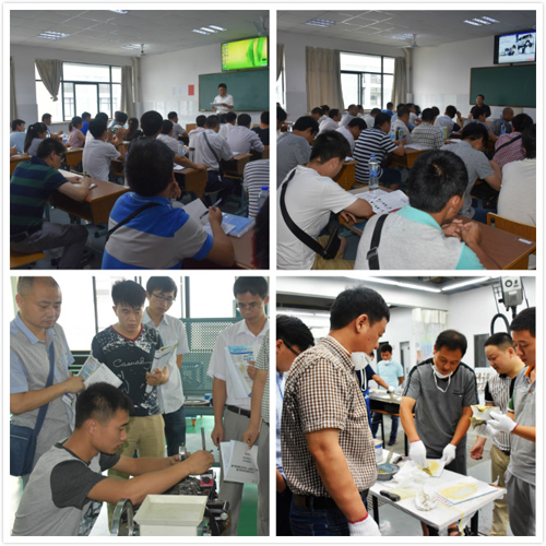 7月9日上午,王凱明老師作了《汽車維修新技術》的講座。他介紹了汽車各系統的技術特點和汽車維修技術的發展方向,也談到了新能源汽車的發展趨勢。7月9日下午,參培老師分為機電團體、機電個人、汽車空調、車身涂裝和車身修復等5個組,由相關授課專家帶隊按規定的培訓計劃進行理論和實操教學培訓。