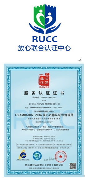 2017年1月22日,經放心聯合認證中心審查組驗證確認,北京天木汽車修理有限公司符合T/CAMRA 002-2016《放心汽修認證評價規范》的要求,獲得放心汽修服務認證證書,成為首批通過放心汽修服務認證的一類汽修企業。