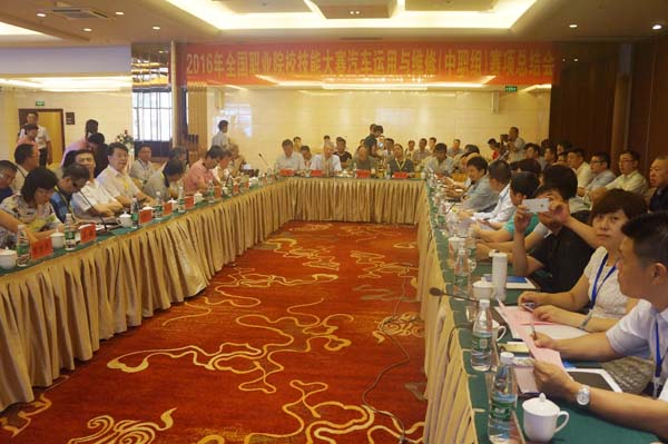 在上午的會(huì)議中,大賽仲裁長(zhǎng)王凱明老師介紹了2016年賽事總體情況、比賽與平時(shí)教學(xué)之間的關(guān)系、今后賽事的展望等。相關(guān)裁判長(zhǎng)分別對(duì)機(jī)電團(tuán)體、機(jī)電個(gè)人、車(chē)身修復(fù)、車(chē)身涂裝和汽車(chē)空調(diào)5大賽項(xiàng)做了專(zhuān)題點(diǎn)評(píng),介紹了2016年各賽項(xiàng)的情況。內(nèi)容涉及各賽項(xiàng)比賽成績(jī)的評(píng)析、比賽中發(fā)現(xiàn)的問(wèn)題、選手的主要失分點(diǎn)、比賽中暴露出的不足以及2017年賽項(xiàng)設(shè)置的設(shè)想。