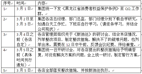 會議紀要:1、全員組織學(xué)習(xí)“新消法”制定學(xué)習(xí)計劃,針對自店情況,自檢不足,制定整改措施。