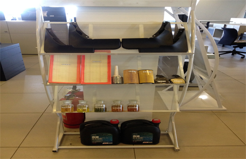 二、真假件展示。針對客戶在路邊店保養(yǎng)的風(fēng)險,增設(shè)真假件展示架,方便客戶準(zhǔn)確識別真假件。