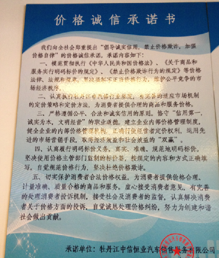四、價格誠信承諾公示、價格投訴制度上墻公示。