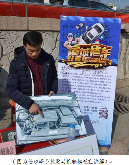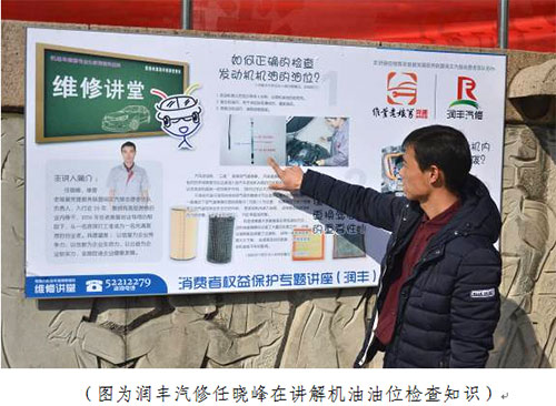維管老娘舅黨建聯(lián)盟作為常熟維管黨支部的黨建品牌,不斷探索深入企業(yè)、聯(lián)系群眾工作新思路,潤(rùn)豐汽修負(fù)責(zé)人任曉峰作為2016年老娘舅創(chuàng)業(yè)導(dǎo)師輔導(dǎo)成功創(chuàng)業(yè)的小微企業(yè)主,積極向“維管老娘舅”公益服務(wù)團(tuán)隊(duì)靠攏,準(zhǔn)備了展板等材料,并手持發(fā)動(dòng)機(jī)艙模板,通俗易懂的向群眾講解了機(jī)油油位檢查、濾芯更換、預(yù)防積碳等常識(shí)。群眾踴躍提問(wèn),主講人積極回答,群眾增長(zhǎng)了汽修消費(fèi)知識(shí),企業(yè)也了解了消費(fèi)者的真實(shí)想法。虞城修車(chē)好青年誠(chéng)信經(jīng)營(yíng)簽約活動(dòng)則真誠(chéng)倡導(dǎo)了誠(chéng)信、尊重、規(guī)范、品牌、質(zhì)量、公平、文明、綠色等經(jīng)營(yíng)理念,受到了現(xiàn)場(chǎng)維修企業(yè)的積極支持。