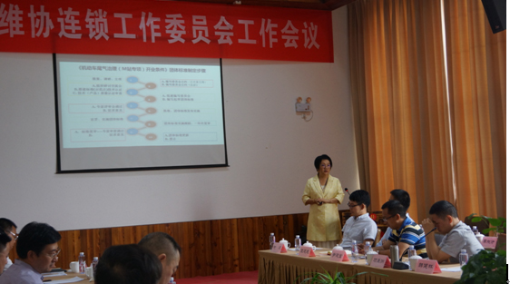 中汽修協連鎖工委嚴雪月秘書長在會上匯報中汽修協連鎖工委2017年二季度工作情況。