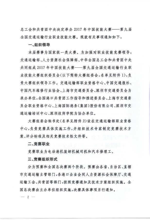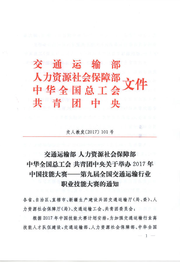 關于舉辦2017年中國技能大賽--第九屆全國交通運輸行業職業技能大賽的通知