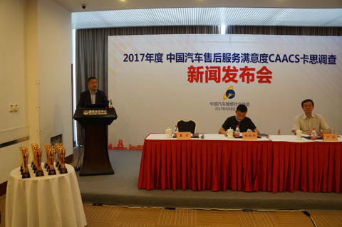 2017年9月8日, “2017年度中國汽車售后服務客戶滿意度調(diào)查(CAACS)新聞發(fā)布會”(簡稱卡思調(diào)查)在北京召開。卡思調(diào)查是由中國汽車維修行業(yè)協(xié)會主辦,汽車制造企業(yè)售后服務工作委員會(售后工委)承辦的一項行業(yè)大型公益調(diào)查活動。本年度發(fā)布會依舊得到交通運輸部有關(guān)部門的關(guān)注,陳潮洲同志代表運輸服務司出席了會議。中國汽車維修行業(yè)協(xié)會秘書長嚴波,副秘書長兼售后工委主任委員蓋方以及來自各主機廠和新聞媒體代表等40余人參加了會議。會議由蓋方副秘書長主持。