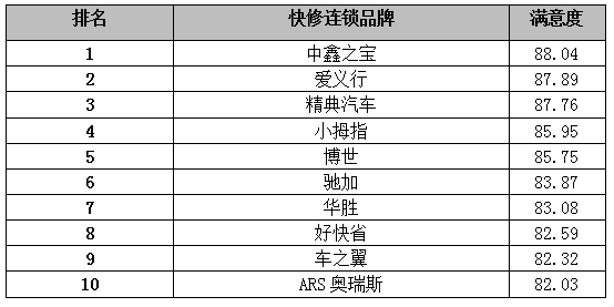 附:2017年度中國汽車售后服務客戶滿意度排名