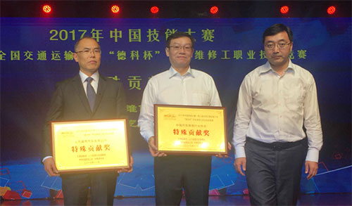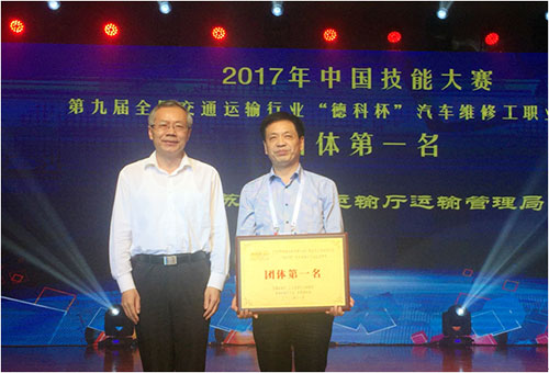 11月17日,2017年中國技能大賽——第九屆全國交通運輸行業“德科杯”汽車維修工職業技能競賽在深圳落下帷幕。交通運輸部黨組成員、副部長劉小明,人力資源和社會保障部黨組成員、副部長湯濤,共青團中央書記處書記汪鴻雁,中國海員建設工會分黨組成員、副主席張景義出席閉幕式。江蘇省交通運輸廳運輸管理局代表隊獲得競賽團體第一名,來自浙江申通時代汽車銷售服務有限公司的選手江海榮獲個人一等獎。中國汽車維修行業協會和上汽通用汽車有限公司榮獲組委會頒發的“特殊貢獻獎”。