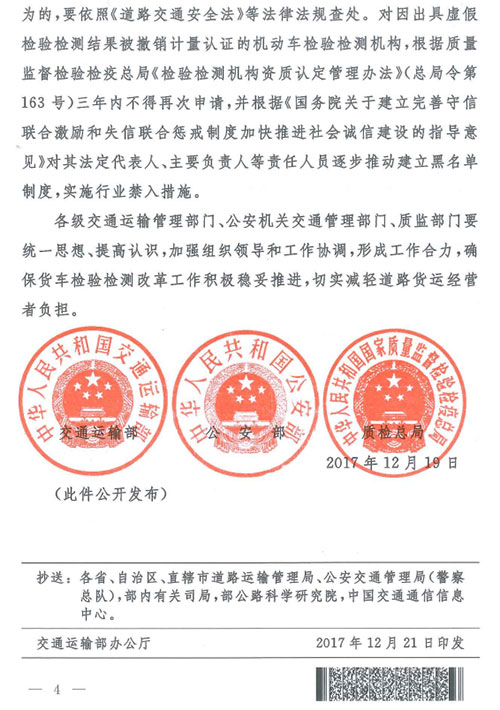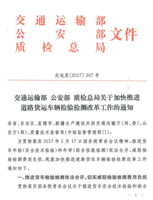 交通運(yùn)輸部 公安部 質(zhì)檢總局關(guān)于加快推進(jìn)道路貨運(yùn)車輛檢驗(yàn)檢測(cè)改革工作的通知