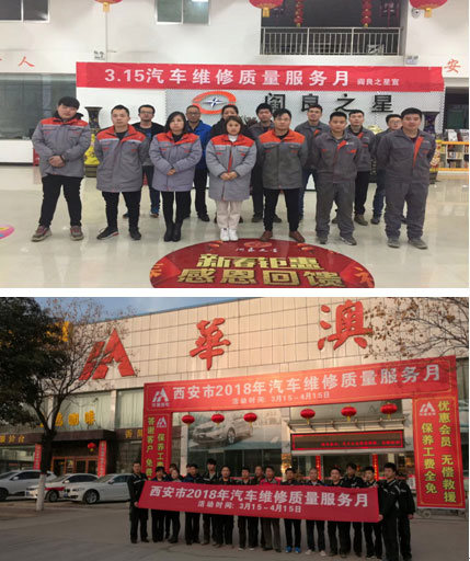 2018年3月15日,在西安市機動車服務行業協會的組織下,西安市各汽車維修企業積極參與活動:西安市重旺汽車維修服務有限公司、陜西北盛東風汽車銷售服務有限公司、西安恒泰汽車服務有限公司、陜西永久汽車服務有限公司、陜西新同方汽車保養維修服務有限公司、西安閻良之星汽車貿易有限公司、西安華澳汽車服務有限公司、陜西華興乾程汽車銷售有限公司、西安之星汽車有限公司、陜西景泰汽車銷售服務有限公司等多家企業按照制定好的企業汽車維修質量服務月活動方案腳踏實地,真抓實干,以期優化行業形象,提升服務質量,為用戶營造舒適放心的消費環境。