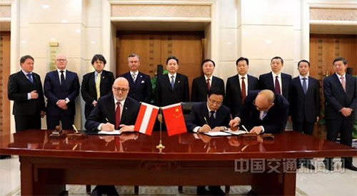 4月9日,交通運輸部部長李小鵬在京會見了奧地利共和國聯邦交通、創新和技術部部長諾貝特·霍費爾,雙方就深化中奧交通運輸領域合作交換了意見,并共同見證雙方鐵路企業簽署了合作諒解備忘錄。