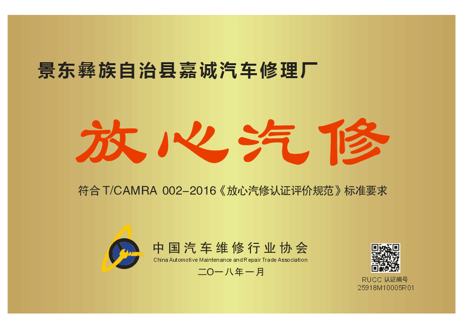 景東彝族自治縣嘉誠汽車修理廠是景東嘉輝集團旗下子公司,建立于2012年7月2日,投資建設總額1000萬元,占地面積1500平方米。公司軟硬件齊全,并且具有嚴格的管理制度和科學的質量管理體系,嚴格控制了整個維修環節,從車輛入廠檢測到出廠檢驗層層把關確保車輛維修質量。