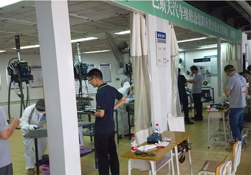 此次大賽由自治區人力資源和社會保障廳主辦,廣西交通技師學院承辦,本次比賽用主要設備均是我公司獨家提供,如汽車技術項目工位用X431診斷儀、博世示波器,重型車輛維修用博世KT710D診斷儀、車拉夫共軌柴油臺架,車身修理項目中奔騰的電阻點焊機、保護焊、快修工具,車身涂裝項目中的薩塔噴槍等。組委會為表彰我公司對本次大賽的大力支持,授權我公司獨家冠名。
