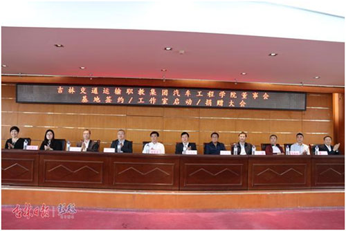 五月的長春,景色宜人,在這美好的日子里,吉林交通運輸職教集團汽車工程學院董事會“實習基地簽約/陽光保險工作室啟動/名師、校友捐贈”大會在吉林交通職業技術學院召開。會議由汽車工程學院黨總支副書記費志偉主持,學校領導、吉林省長白山技能名師、吉林交通職業技術學院校友及來自省內外汽車行業相關企業負責人以及汽車工程學院師生參加了此次大會。