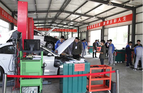 大眾網5月28日訊 近日,山東化工技師學院汽車工程系在實訓車間舉辦了學生汽車維修技能大賽。共有31名選手參加本次比賽,比賽采用單人操作模式,以抽簽形式選擇工位,主要進行了大眾EA211發動機拆裝檢測、桑塔納轎車底盤制動系統跳動量檢測和大眾速騰發動機管理模塊故障診斷三個項目的比賽。