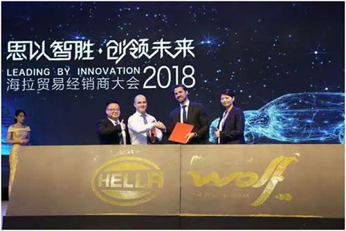 本次會議上,海拉貿易聯合歐洲最大的單體潤滑油生產廠商沃爾弗(WOLF),為中國市場帶來全新的車用化學品。海拉貿易總經理Philippe Thegner先生與沃爾弗亞太業務負責人Gautier de Braekeleer先生共同簽署戰略合作協議,并對此次戰略合作的前景和未來充滿信心。