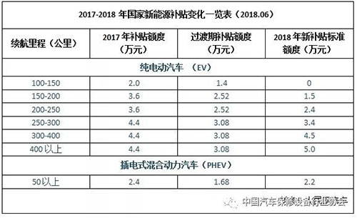 在今年2月12日發布的《關于調整新能源汽車推廣應用財政補貼政策的通知》(財建〔2016〕958號)中,明確了2018年新能源車的國家補貼標準,并設立了2018年2月12日至2018年6月11日為過渡期。過渡期期間上牌的新能源乘用車、新能源客車按照2017年對應標準的0.7倍補貼,新能源貨車和專用車按2017年對應標準的0.4倍補貼,燃料電池汽車補貼標準不變。