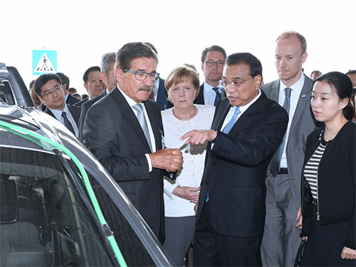 最為引人矚目的莫過于汽車領域合作。這其中不僅有被默克爾稱為具有“里程碑意義”的中德關于自動駕駛合作的聯合意向聲明,也包括另一個“第一例”寶馬公司在中國合資企業持股超過50%,以及江淮汽車與大眾汽車集團共同投資建立新能源汽車研發中心暨共同開發緊湊型純電動汽車平臺、清華大學與德國戴姆勒集團智能網聯汽車關鍵技術聯合研發等7項協議。