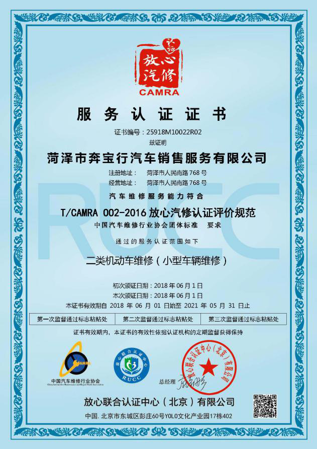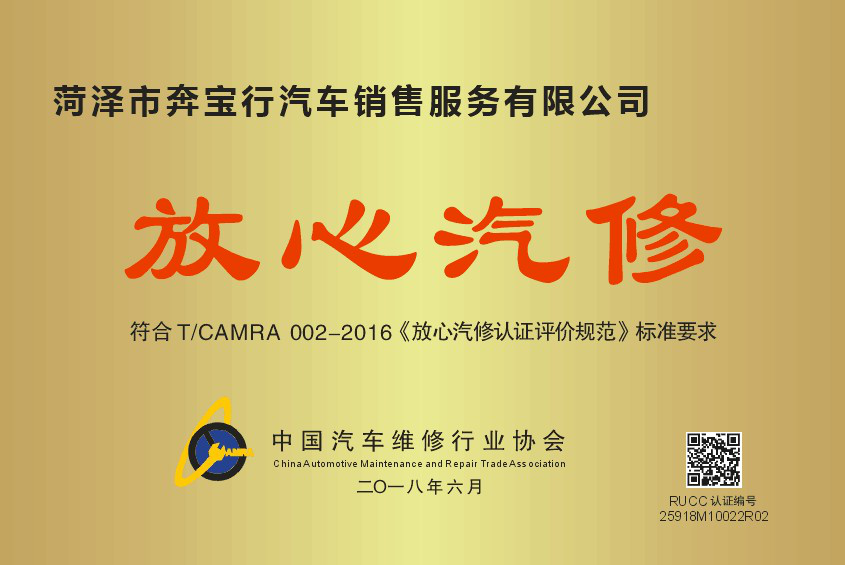 孫總說:“放心汽修認證促進了汽修企業(yè)誠信、規(guī)范的健康發(fā)展。放心汽修認證是符合國家政策、市場導向的,是能夠促進汽修企業(yè)提升服務管理水平,向著讓消費者放心、政府滿意、讓汽修行業(yè)良性發(fā)展的專業(yè)認證機構。感謝放心汽修認證團隊給予菏澤奔寶行的指導和肯定。”