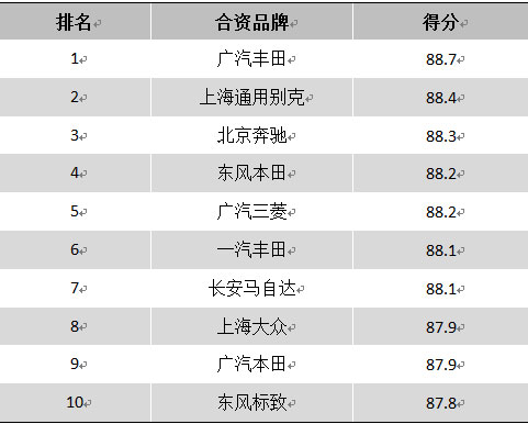 附:2018年度中國汽車售后服務客戶滿意度部分項目前列排名