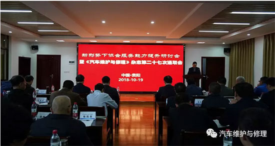 新形勢下協會服務能力提升研討會 暨《汽車維護與修理》雜志第二十七次通聯會議于2018年10月19日在美麗的貴州省貴陽市召開。出席本次會議的有交通運輸部運輸服務司丁昌武處長,貴州省道路運輸局呂小康調研員,中國汽車維修行業協會副會長、《汽車維護與修理》雜志社社長汪學君,中國汽車維修行業協會嚴波秘書長,中國汽車維修行業協會副秘書長、《汽車維護與修理》雜志社副社長兼總編于開成,各地運管(維管)部門的負責同志,雜志編委會委員,通聯工作代表及汽車維修行業協會和維修企業的代表,共90多人。