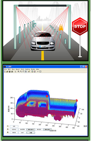 機(jī)動(dòng)車外廓尺寸動(dòng)態(tài)自動(dòng)測(cè)量?jī)x可以方便地檢測(cè)(時(shí)速3-7公里)汽車的外廓尺寸,并與該車輛的外廓尺寸原始數(shù)據(jù)進(jìn)行比對(duì)(或與車管所數(shù)據(jù)庫中該車輛的外廓尺寸原始數(shù)據(jù)自動(dòng)進(jìn)行比對(duì)和判定),加強(qiáng)對(duì)車輛的監(jiān)管。該測(cè)量?jī)x還可以推廣應(yīng)用到汽車制造廠車輛出廠的檢測(cè)、港口集裝箱和貨物的檢測(cè)、礦山貨運(yùn)車輛及貨物的檢測(cè)的等等,用途非常廣泛。